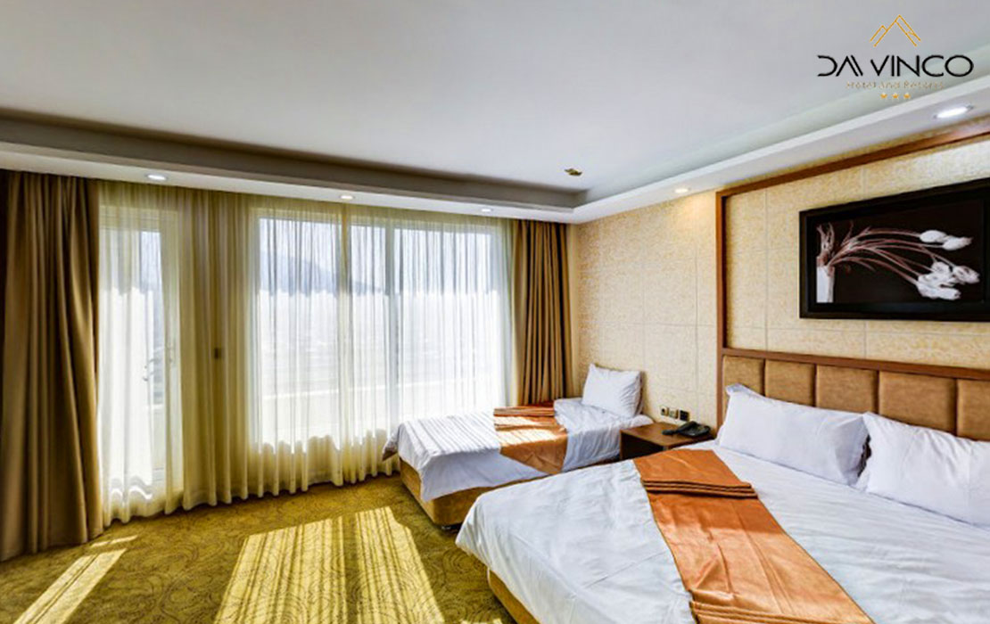 علاوه بر رستوران با فضای عالی و غذاهای بین نظیر، امکان رزرو اتاق های 3،2 و 4 تخته آنلاین وجود دارد. امکانات اتاق ها سه تخته هتل داوینکو شامل : تلويزيون، ميني بار، چاي ساز، بالش نرم، دوش حمام، بالکن، چشم انداز رو به شهر / کوه، اينترنت پر سرعت، سونا و جکوزي، زمين تنيس، صندوق امانات، ويديو مرکزي 24 ساعته، روم سرويس 24 ساعته.